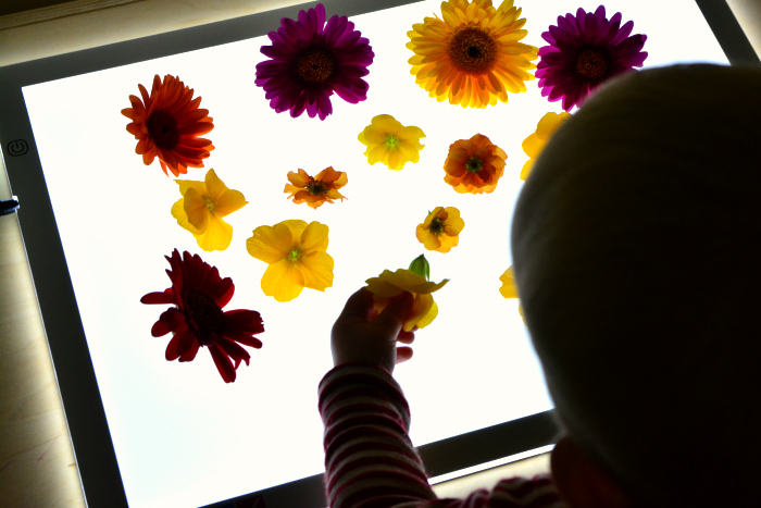 Devices such as light tables can be used to explore and introduce concepts such as colour, shade, bright and dark, shadows. Or to explore substances which children might find on outdoor adventures, leaves, plants, flowers, bugs, food and much more.