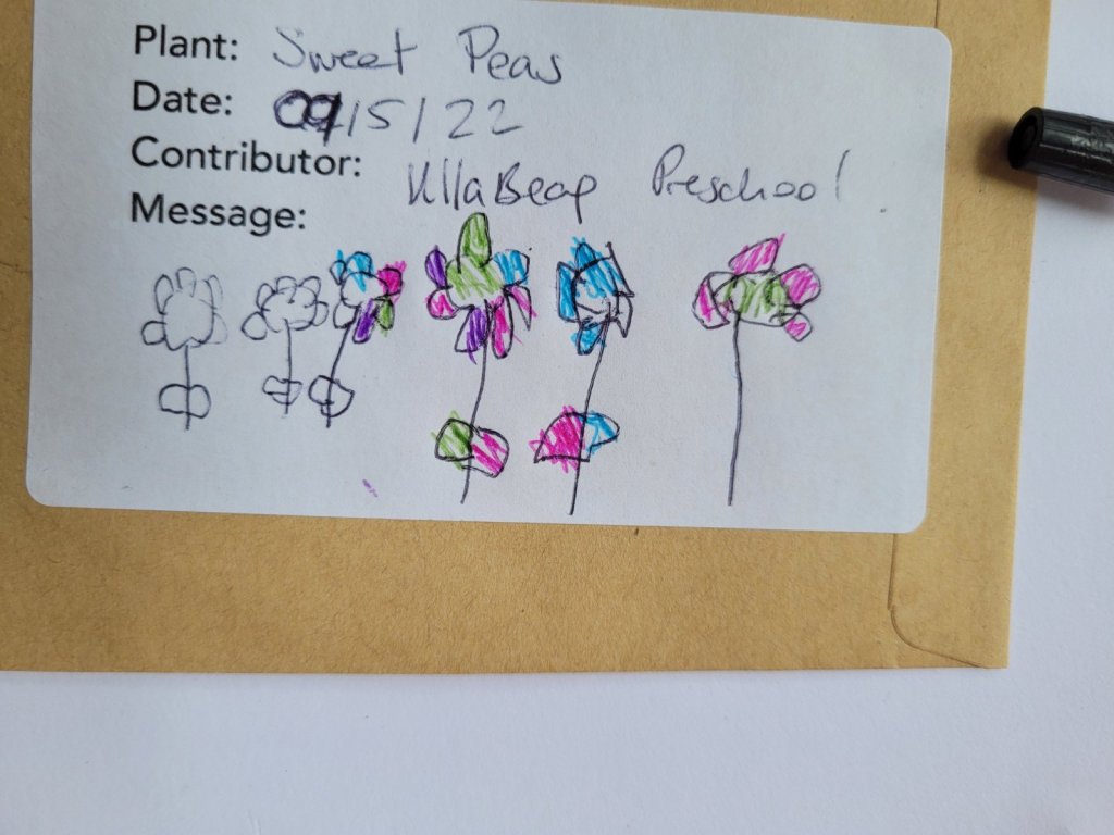 Gardening, mud kitchens, drawing, painting, stories, muddy boots are all part of the daily routine here as this is what the children tell us they want to do. One of the greatest deliverables of an emergent curriculum is that you become a very active listener, you see through the eyes of the child and you learn with them. Working alongside my fellow EY teacher Rhona we love our daily work with the children. In May 2022 we had were involved in the Seedsavers and Rachel Doolin Project Seedarium. With the children we went through our seed store – all of which are saved seeds year on year with the children and together decided which seeds we wanted to be included in the seedarium.